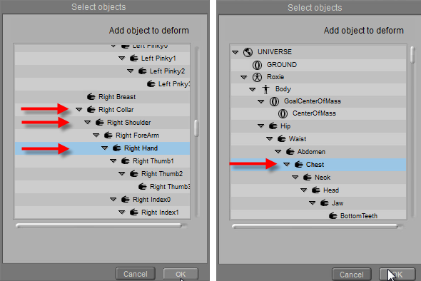 For the magnet, add (one at a time) the Right Hand, Right Shoulder, Right Collar, and Chest as elements to deform.