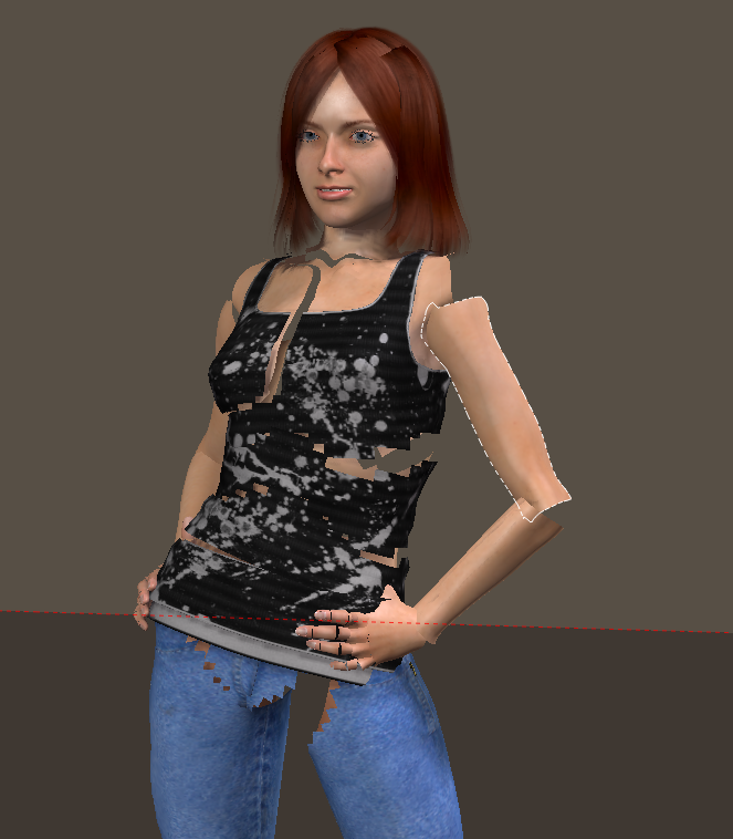 Selecting Display> Bend Body Parts toggles bending on and off. All body parts are separate elements (actors). As you change their positions, Poser attempts to maintain continuity over the entire body. The arm should connect smoothly to the shoulder, etc. Poser achieves these smooth transitions by bending body parts where they join. However, the bends that work well for a body part might not work well when applied to figures created from props, or figures that have some body parts replaced by props (such as replacing a hand with a hook for a pirate character). Rendering images with bending disabled can cause figures to appear “broken."
