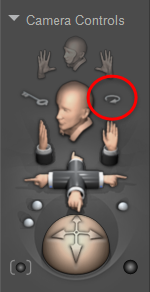 Like the Face camera, you can zoom in on the left or right hand of the currently selected figure to fine-tune gestures and other hand positions. Hand cameras also focus on the currently selected figure. If the figure is an animal, the Hand cameras will focus on the feet/paws/claws as appropriate. To switch to a hand camera, click the Left hand or Right Hand icon as appropriate.