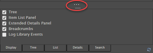 A widget appears at the bottom of the Library palette, just beneath the library buttons shown in the previous figure. Click this widget to expand the Library palette to view the display options described in the sections that follow: