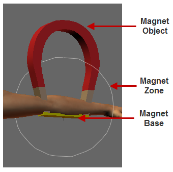 Magnets work by deforming the area within the Magnet Zone along the axis defined by the Magnet Base and Magnet Object in an amount dependent on the distance between the Magnet Object and the Magnet Base.