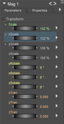XYZTran: The xTran, yTran, and zTran parameter dials move the Magnet Object along the selected axis.