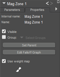 Edit Falloff Graph: Clicking the Edit Falloff Graph button allows you to edit the Magnet Zone’s Falloff graph, which determines where the deforming area ends or falls off. Please see Magnet_Zone_Falloff_Graph for information on using this graph.