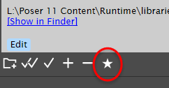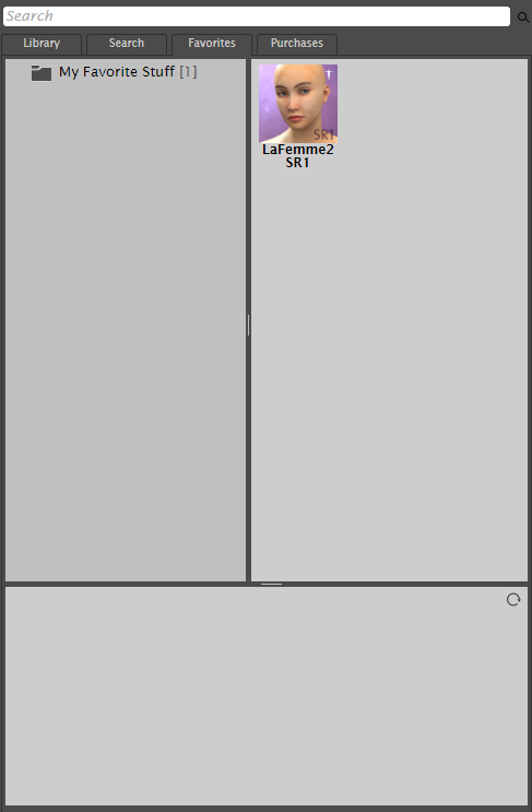 The Favorites tab on the Library palette provides quick access to your favorite Poser content. The Favorites tab allows you to quickly add your favorite content to library folders that you create yourself.