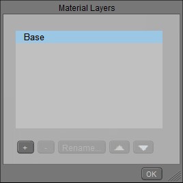 2.Click the Material Layers button at the top of the editor window. The Material Layers window opens. The Base layer, and any other existing material layers will be shown in the list.