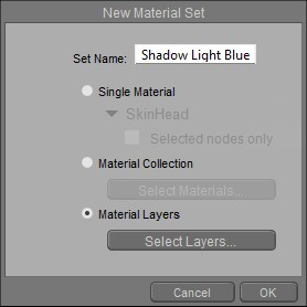 6.Select the Material Layers radio button at the bottom of the New Material Set dialog. This option will be grayed out if the selected object has no materials.