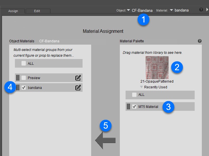 4.Select the material zone(s) in the Object Materials section that will receive the materials you selected in Step 2.