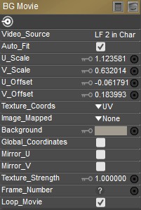 •Texture Strength: Click to specify the strength of the movie source. The default value is 1 which will be fully opaque. Values lower than 1 will be partially transparent, and rendered over the Color as set in the Background root node.