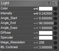 A root Light node appears whenever you have a light selected. Each light in your scene has its own root Light node, which has the following attributes: