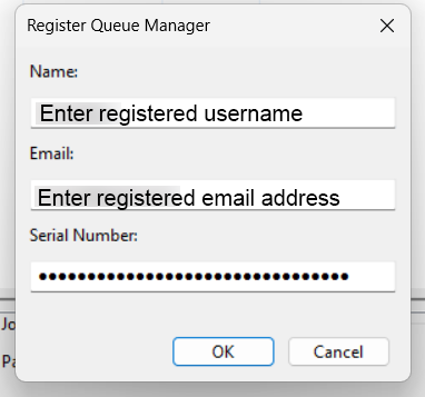 When you start Queue Manager on a remote computer, a registration dialog will appear.