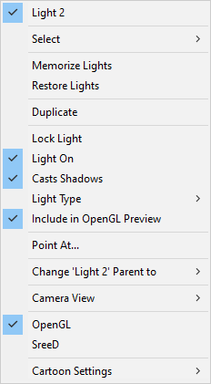 Light Type: Allows you to choose the type of light. A check mark appears beside the currently selected light type.