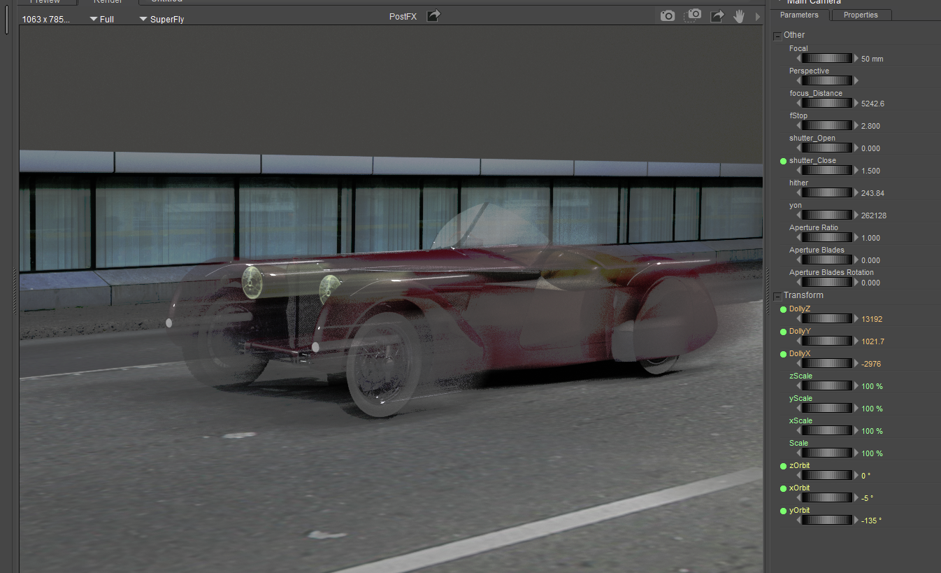 Next, adjust the Shutter Open and Shutter Close settings in the Camera parameters dialog: