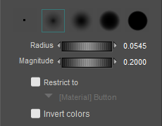 Radius: Controls the size of the brush. Move the slider left or right to adjust the size, or enter a specific value in the Radius text box.