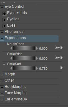 Faces can be enhanced with Expression morphs, which vary from figure to figure.