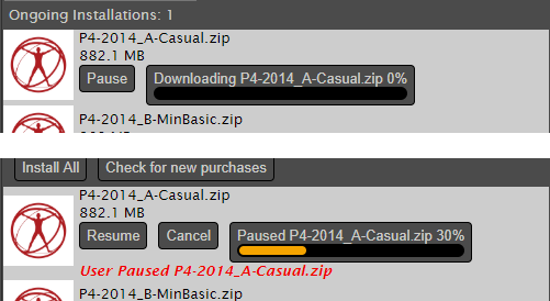 •Click the Pause button to pause downloading of a selected item. A message appears in the window when the download is paused.