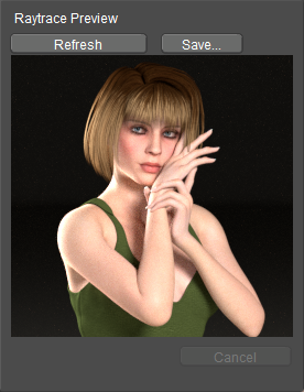 Click the Refresh button to manually refresh the raytrace preview after you make changes to your scene. Click Save to save the preview image to a location of your choice.