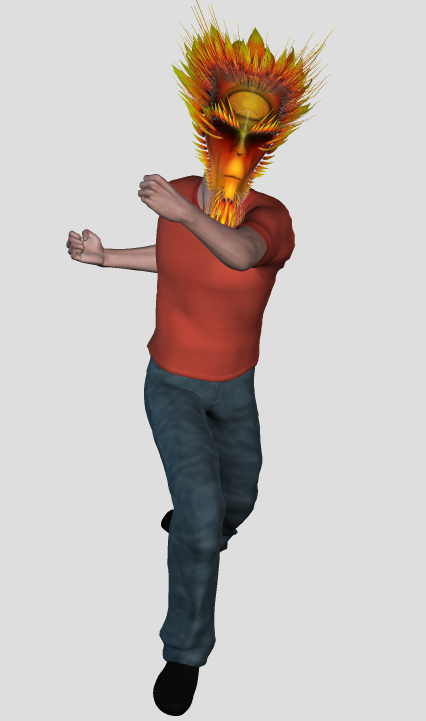 Poser lets you replace a body part with a prop, such as a hook on a pirate’s hand or a mask for a man’s head. This example was created by importing a model of a mask, then replacing the figure’s head with that mask.