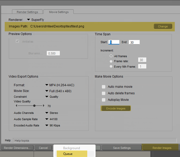 Then click the Encode Images button at the bottom of the make movie dialog.