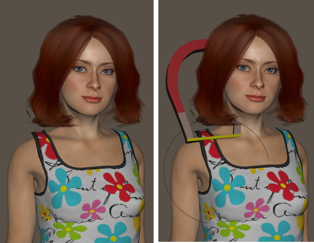 Poser’s deformers (magnets, force fields, waves, morphs) shape body parts, props, and figures into new and interesting forms. You can stretch a nose, make a belly bounce with a walk, make hair and clothing blow in the wind, and create almost any body shape you can imagine. You can animate deformer settings and positions, allowing you to create (for example) gusting winds (force field), bulging muscles (morph targets), etc. The Wave, Force Field, and Magnet deformers can also create custom morph targets.