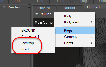 Poser will add two props to the scene. The first prop will be named the same as the actor that you created the control chip for (Head, in this case). You can delete this prop. The second prop will be your control chip (Jaw Prop, in this case).