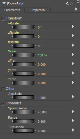 XYZRotate: The xRotate, yRotate, and zRotate parameter dials rotate the force field around the selected axis.