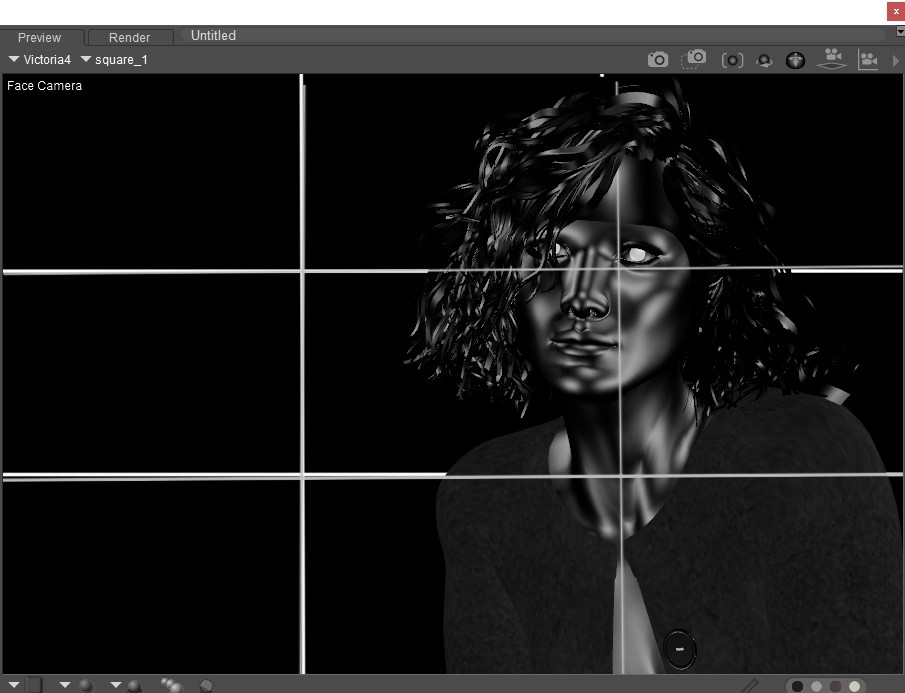 For more accuracy you can use a black and white grid as a transparency map for the native Poser one-sided square prop and place that in front of your subject to see the lines and intersections better. This overlay helps you frame your subject with precision Just make sure "Visible in Camera" is unchecked in its Properties tab so it doesn't show up in your final renders.