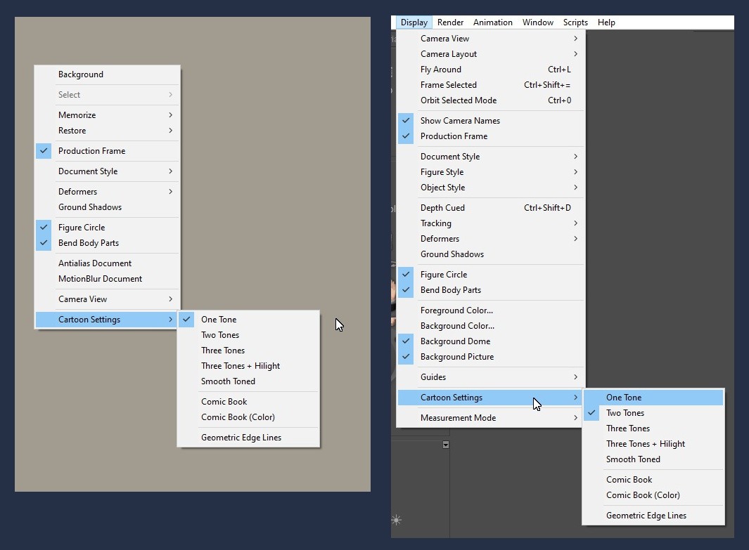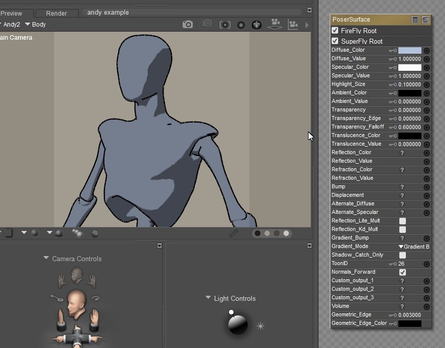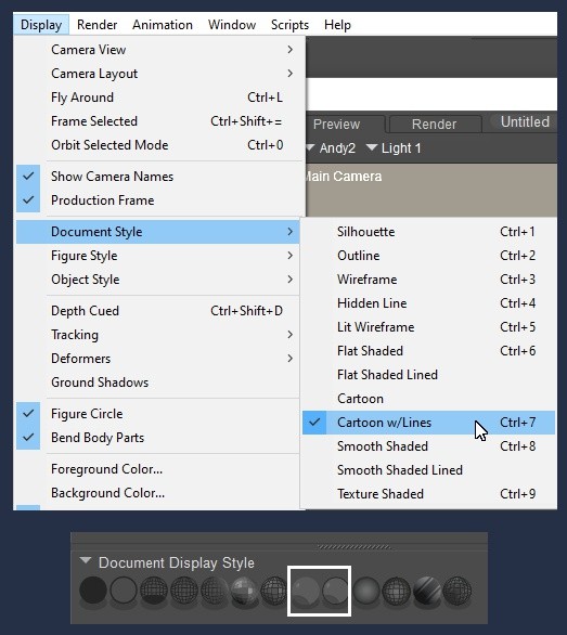 Poser keeps things beautifully simple. To activate the cartoon look, just choose: