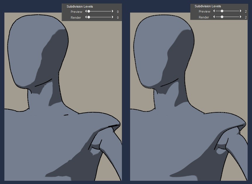 Hint: You can also increase subdivision at this point to get an even cleaner look in some cases. You can see what a difference subdivision made here. This is especially useful for larger renders.