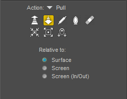 - Click the icon for the action you wish to use to modify the vertices: Push, Pull, Flatten, Smooth or Restore. You can also choose one of the modes from the Action menu that appears just above the icons.