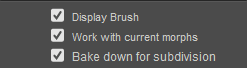 - Bake down for subdivision: When working on morphs on subdivided figures, this allows any changes made at higher subdivision levels to also work at lower subdivision levels if the lower resolutions support the morph. For more information about subdivided morphs, see Creating Subdivision Level Morphs .