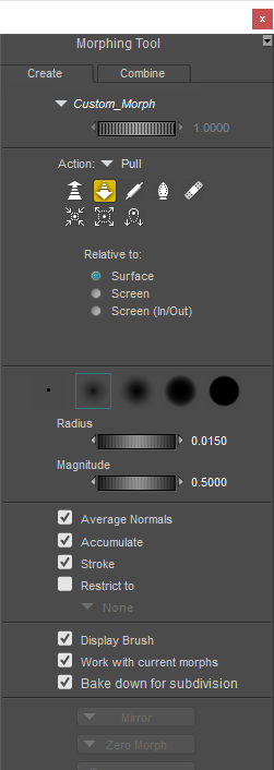 Radius and Magnitude settings control the size and strength of the Morph Brush.