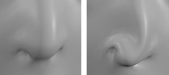 - Screen: Screen mode allows you to deform the mesh in any direction you wish. This option is useful for situations when you may wish to sculpt the mesh in a transverse or vertical direction. Please note that the direction of the modification in Screen mode is determined by the current view of the figure as relative to the screen. For example, if you wish to deform the mesh towards the camera, you should rotate the figure ninety degrees, then make your modification by moving your mouse to the side.