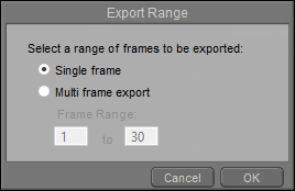 To export more than one frame, choose Multi Frame Expor t, and then enter the desired frame range in the number fields.