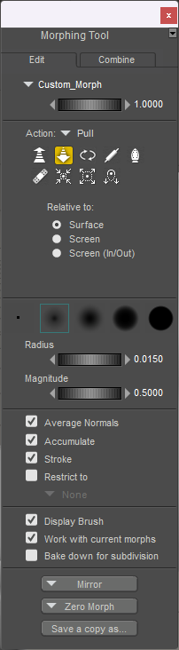 Radius and Magnitude settings control the size and strength of the Morph Brush.