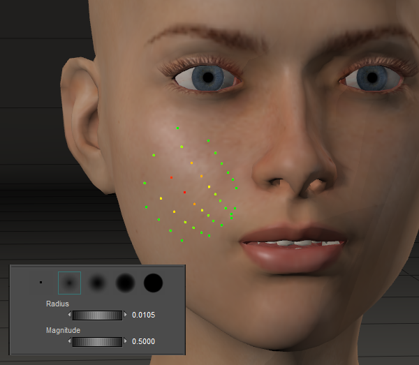 8.You may want to adjust the Magnitude dial to specify how much effect the Morphing Tool will have within the impact region. A high Magnitude setting will allow you to make large-scale dramatic changes, for faster workflow. A low Magnitude setting will allow you to make more precise, focused changes.