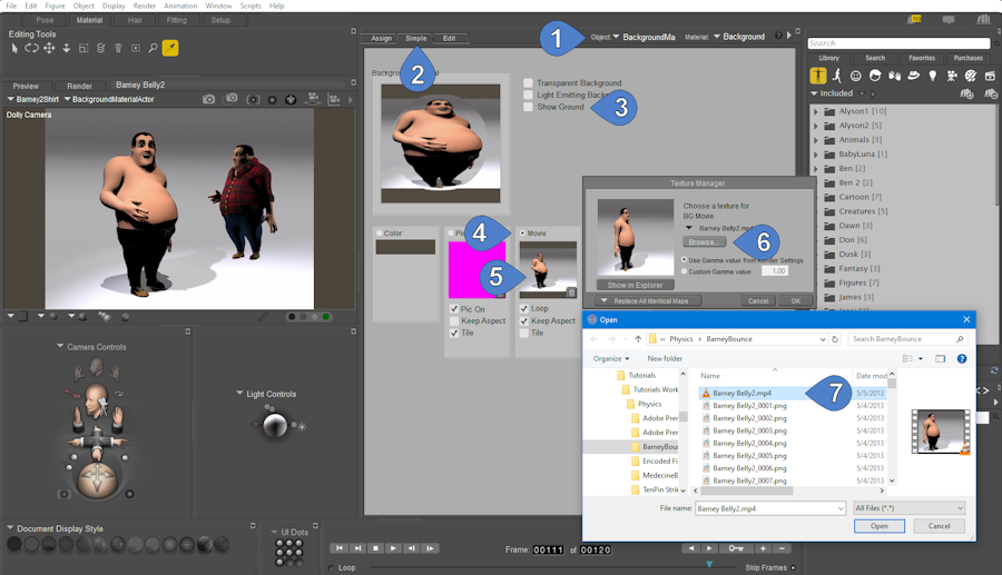 The easiest way to add a background movie to your scene is by using the Simple Background Tab in the Material Room.